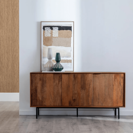 Aparador en color natural fabricado en madera de mango, combinado con hierro.