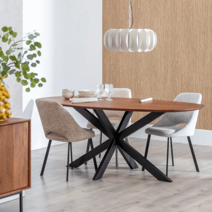Mesa de comedor en color marrón y negro fabricada en madera de mango, combinado con hierro.