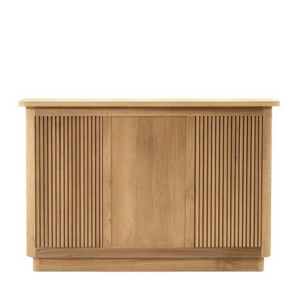 Mostrador en color natural fabricado en madera de teca, combinado con mármol.