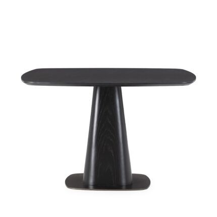 Mesa de comedor cuadrada en color negro fabricada en chapado mdf, combinado con madera de roble.