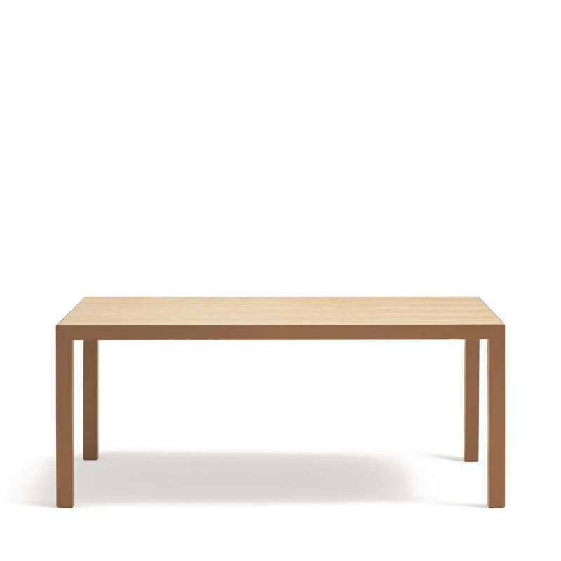 Mesa de comedor en color roble y arcilla fabricada en chapa de roble, combinado con metal.