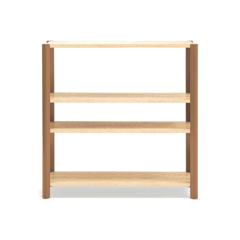 Estantería en color roble y arcilla fabricada en chapa de roble, combinado con madera lacada.
