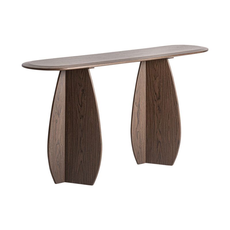 Consola en color marrón fabricada en mdf, combinado con chapa de madera.