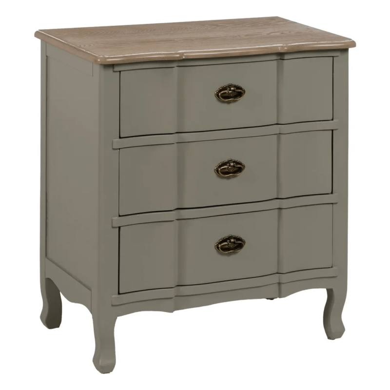 Mesita de noche en color taupe fabricada en madera de abeto, combinado con MDF.