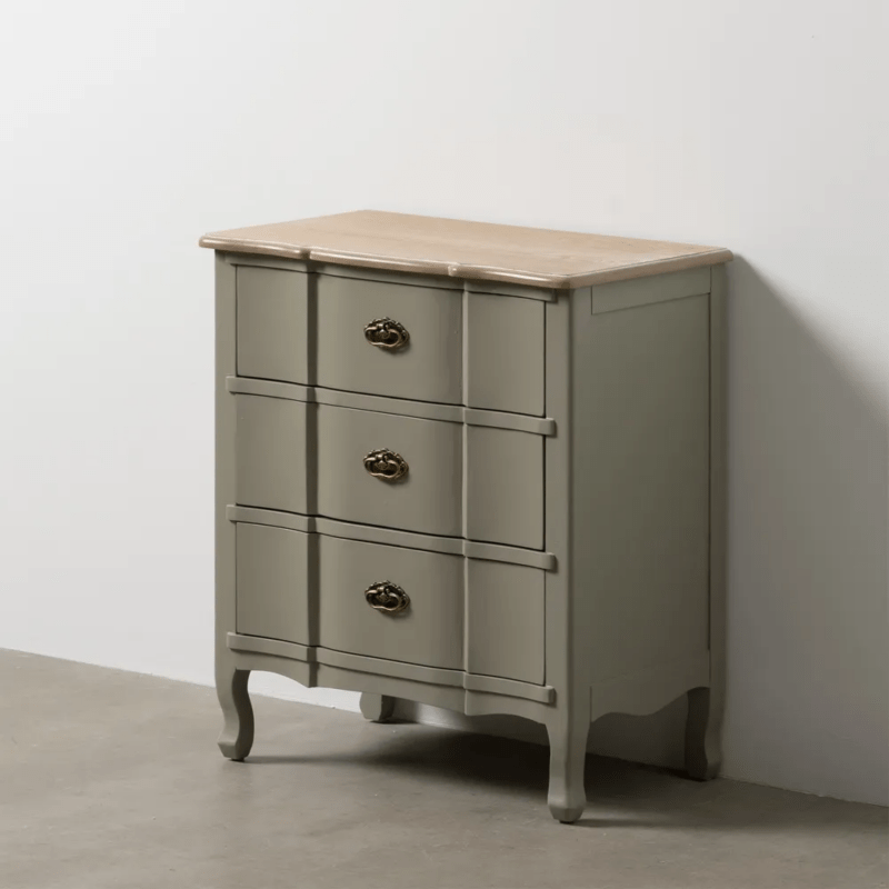 Cómoda en color beige fabricada en madera de abeto, combinado con MDF.