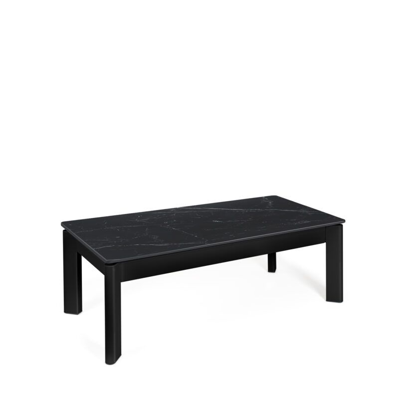 Mesa de centro elevable en color negro fabricada en porcelánico, combinado con metal.