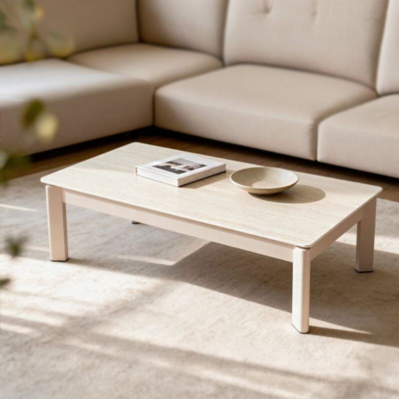 MESA DE CENTRO ELEVABLE ROLAND TRAVERTINO Y BEIGE 120X60X46