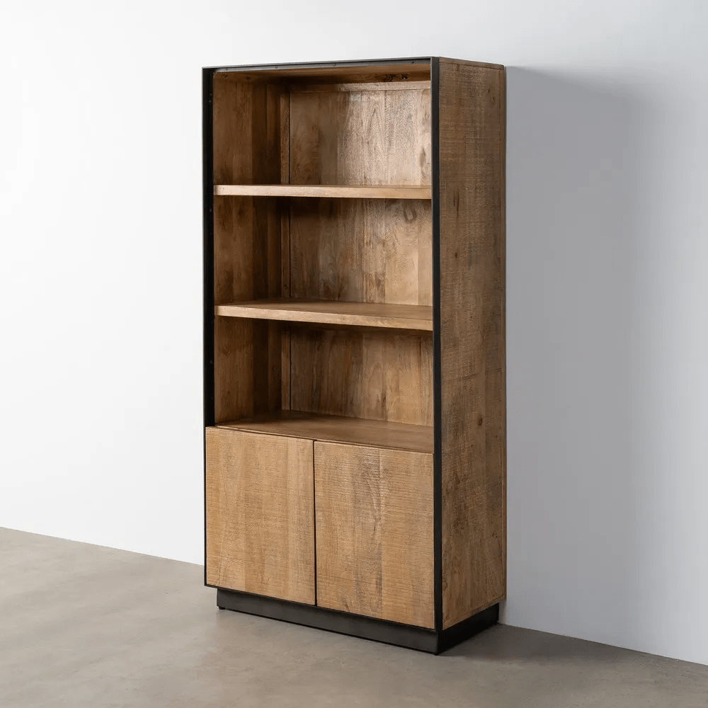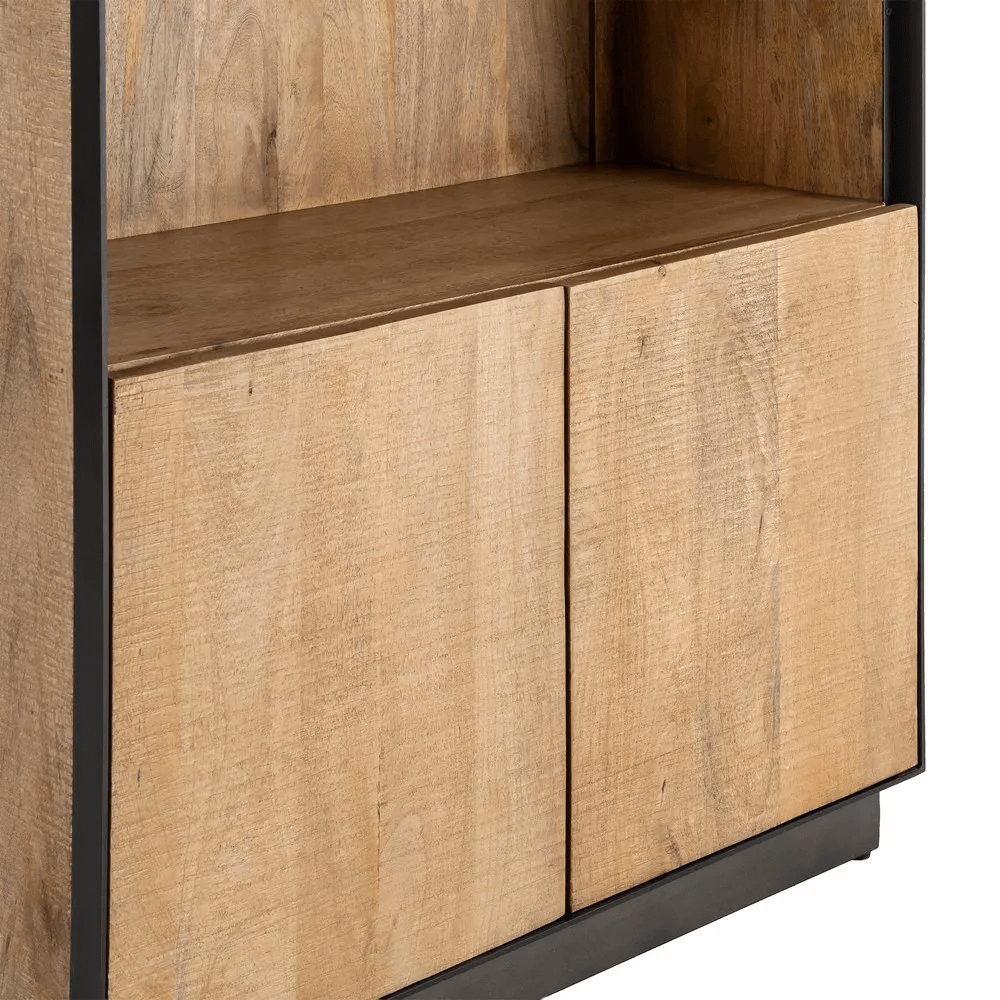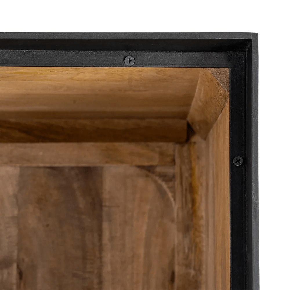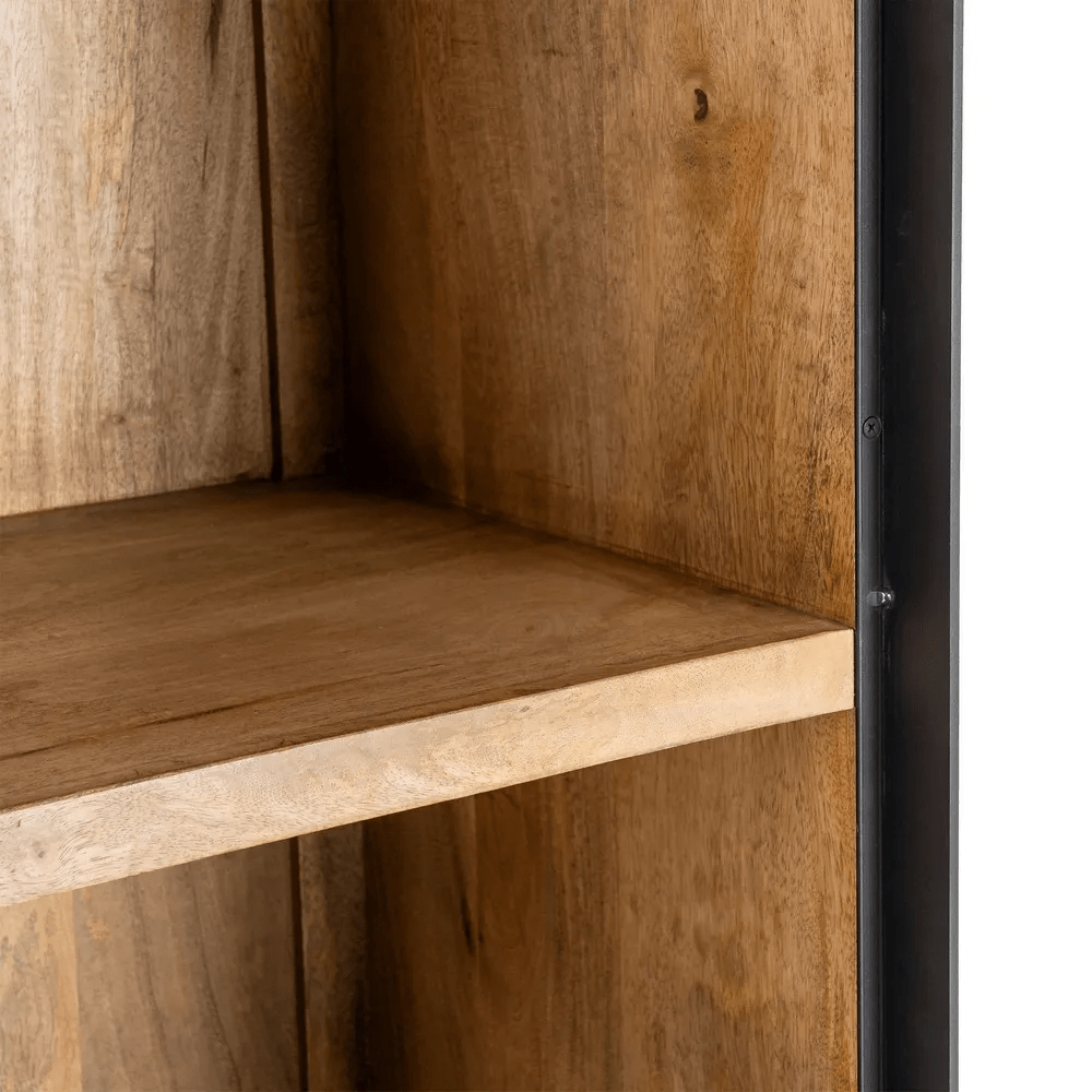 Alacena en color natural fabricada en madera de mango, combinado con hierro.