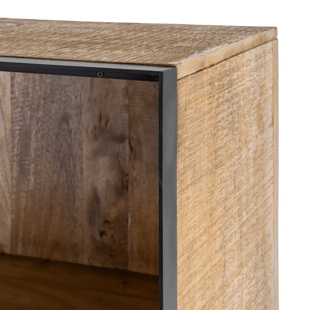 Mueble auxiliar en color natural fabricado en madera de mango, combinado con hierro.