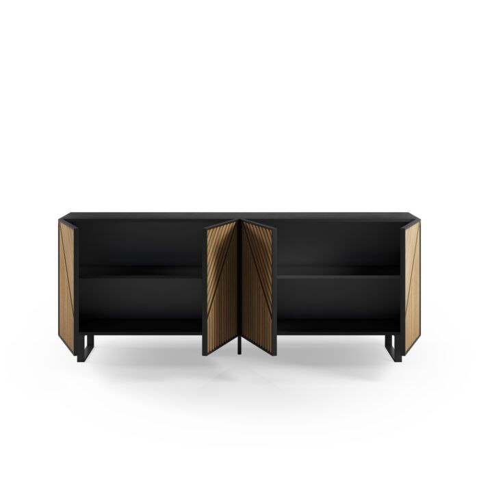 Aparador en color negro y roble fabricado en melamina, combinado con metal.