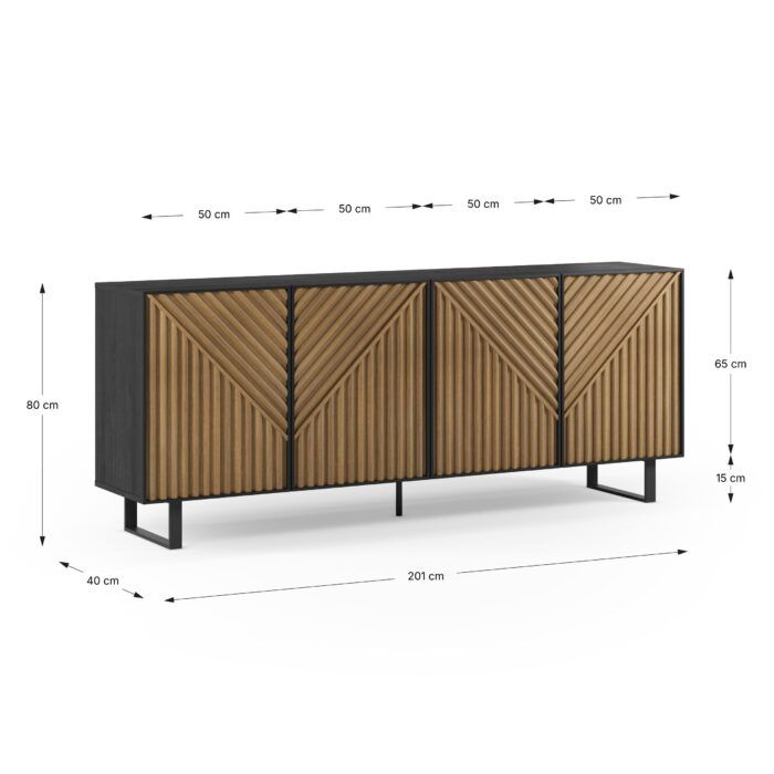 APARADOR ALANA 4P NEGRO Y ROBLE 201X40X80