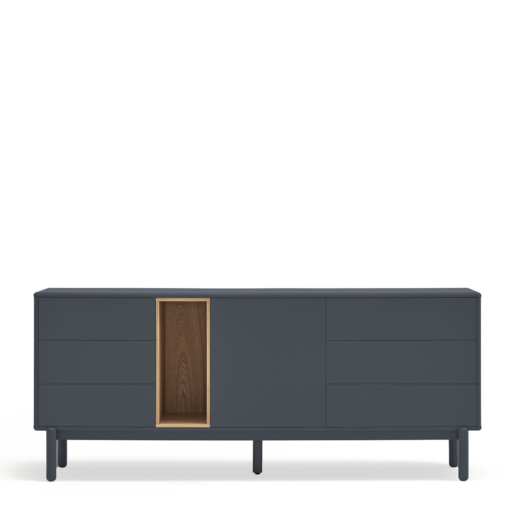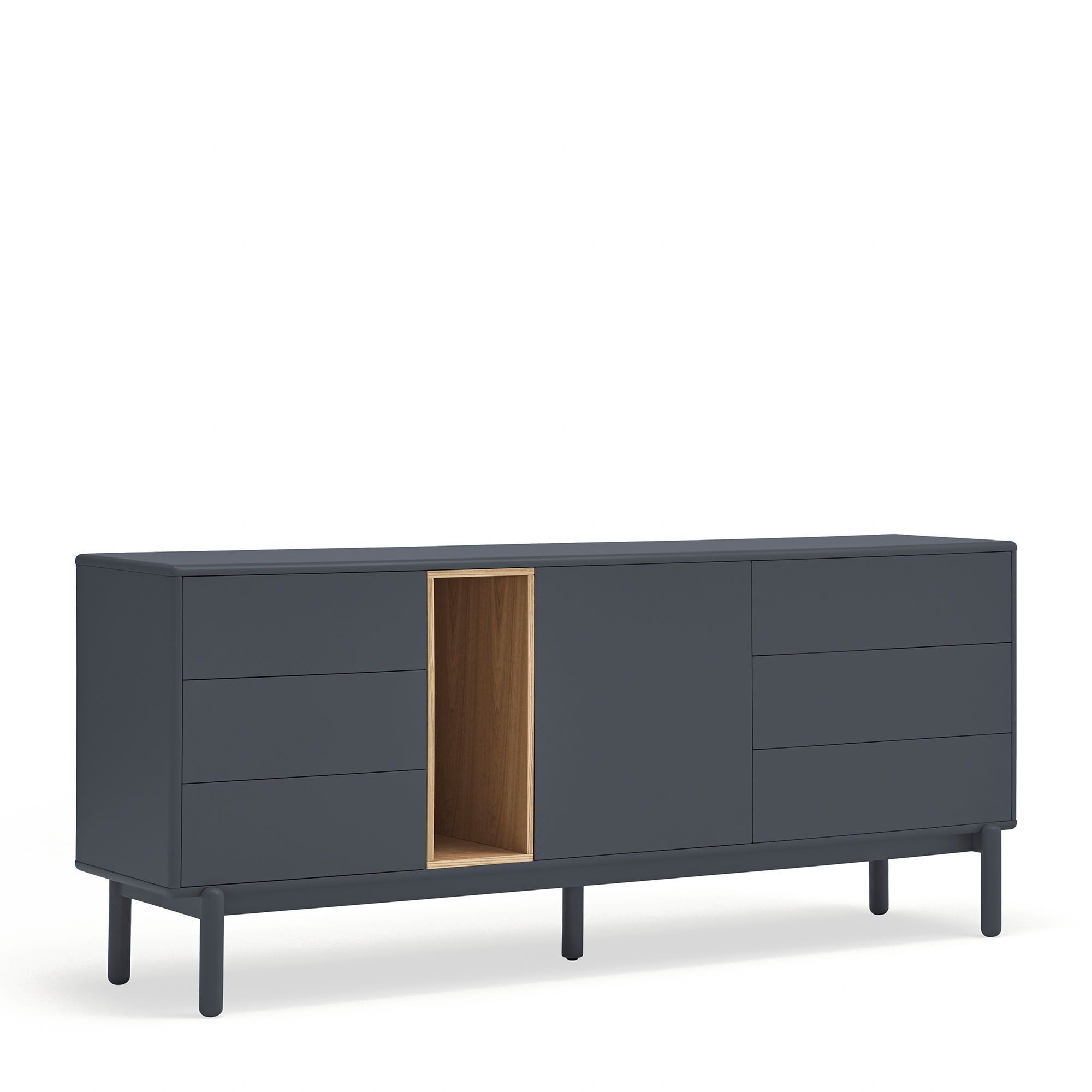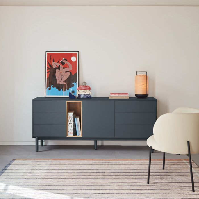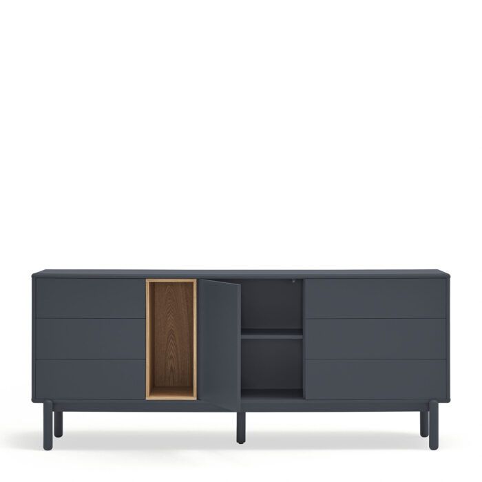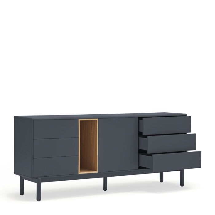 Aparador en color gris antracita fabricado en MDF lacado, combinado con chapa de roble.