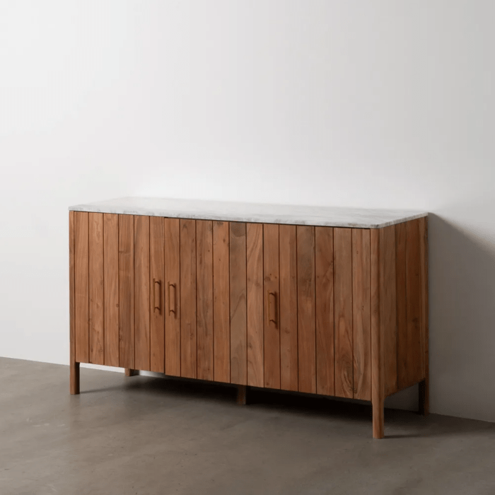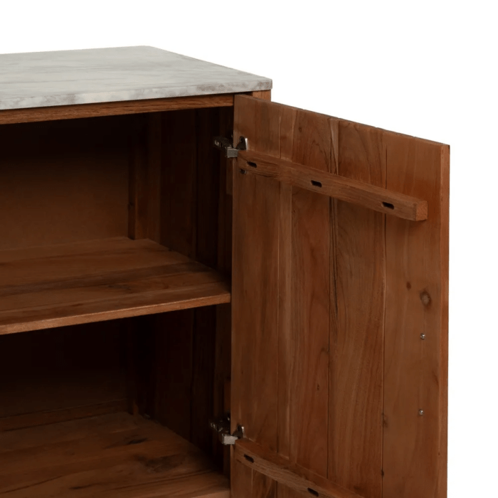 Aparador en color natural fabricado en madera de acacia, combinado con mármol.