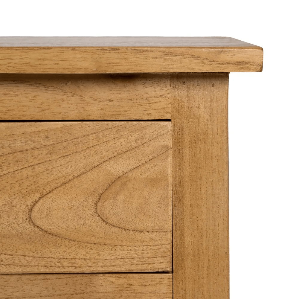 Cómoda realizada a mano con madera de mindi y accesorios de bronce.