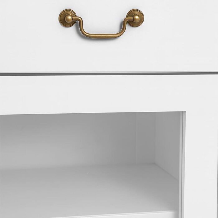 Los tiradores metálicos de estilo clásico en tono bronce envejecido realzan su carácter artesanal y sofisticado. Además, no requiere montaje, por lo que podrás disfrutarlo desde el primer momento.