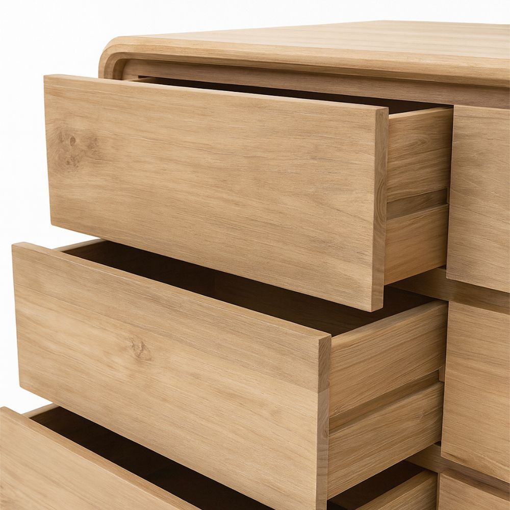 La cómoda EYRE destaca por su diseño elegante y funcional, combinando líneas suaves con una presencia natural que transforma cualquier dormitorio. Fabricada a mano en madera maciza de teca, cada pieza muestra vetas únicas y una textura cálida que refleja la autenticidad de este material excepcional.