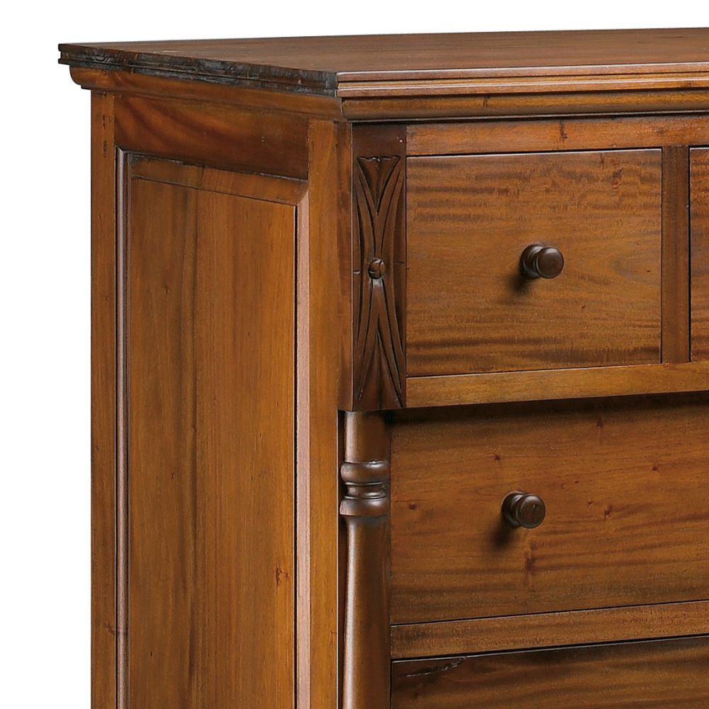 Realza la personalidad de tus estancias con esta cómoda vintage, una pieza auténtica y refinada que evoca la elegancia del más clásico estilo inglés. Elaborada a mano en madera de caoba, tanto su estructura como sus tiradores de caoba destacan por su calidez y belleza natural. Sus seis cajones amplios ofrecen un almacenamiento práctico, mientras que los detalles tallados aportan un carácter distintivo y atemporal.