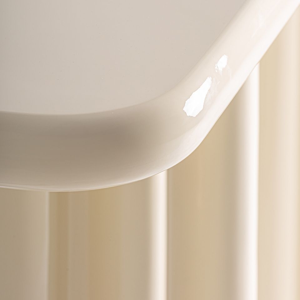 La consola Alba se define por su estética suave y contemporánea, realizada en MDF lacado en color crema que aporta luminosidad y una elegancia serena al espacio. Sus formas redondeadas y su acabado uniforme crean una pieza equilibrada y sofisticada, ideal para interiores modernos que buscan calidez, sencillez y un diseño con presencia sutil. Una consola pensada para integrarse con naturalidad y aportar un toque refinado al ambiente.