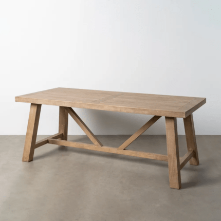 Mesa de comedor en color natural fabricada en madera de caucho.