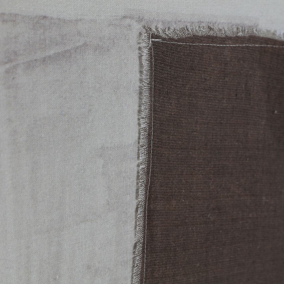 BRUMA es una pieza que celebra lo esencial a través de una composición pura y equilibrada. Sobre un fondo blanco suave, capas de lino en tonos marrones dialogan con la textura del lienzo, creando un efecto táctil que se percibe natural y orgánico. Cada pliegue, cada fibra, aporta dimensión y serenidad visual.