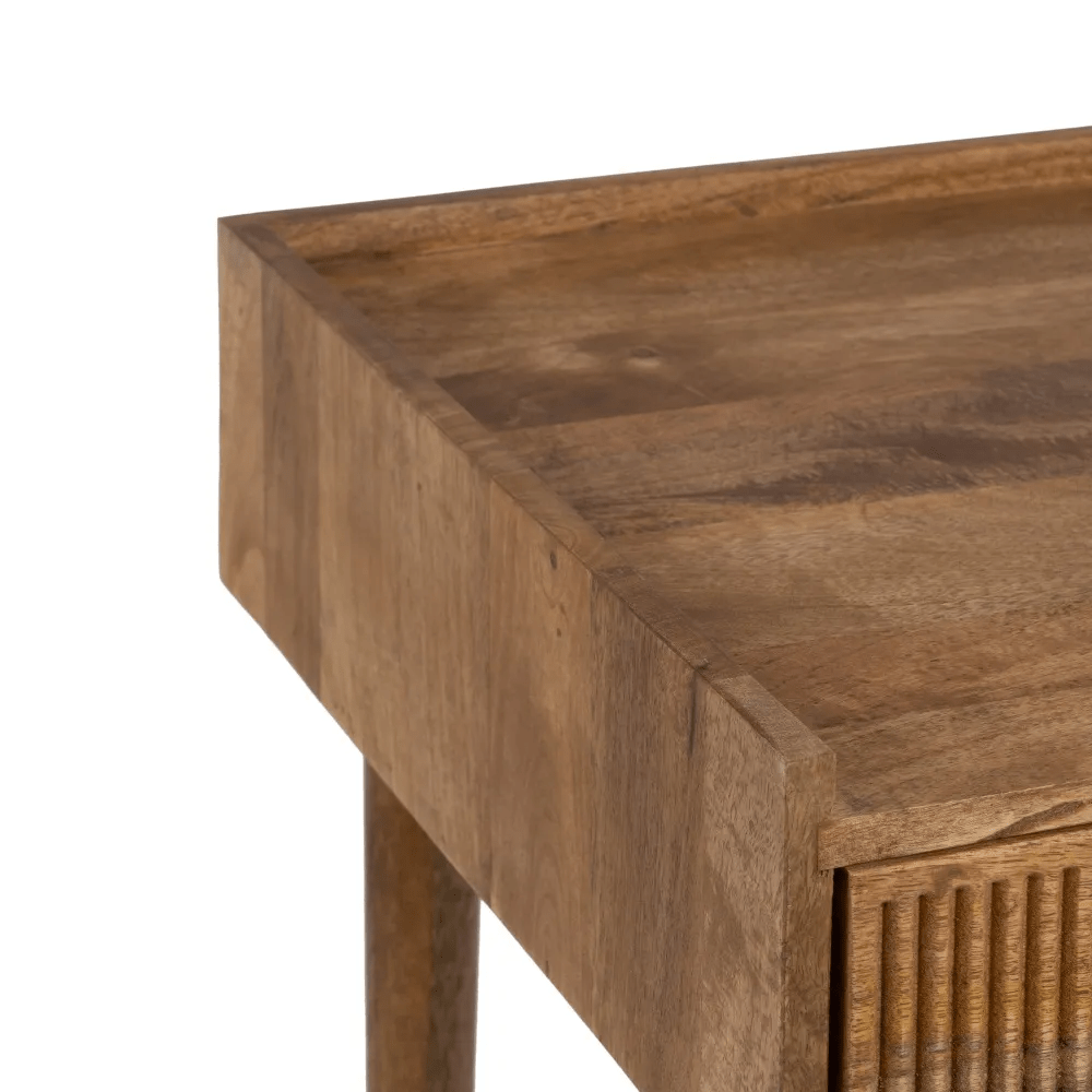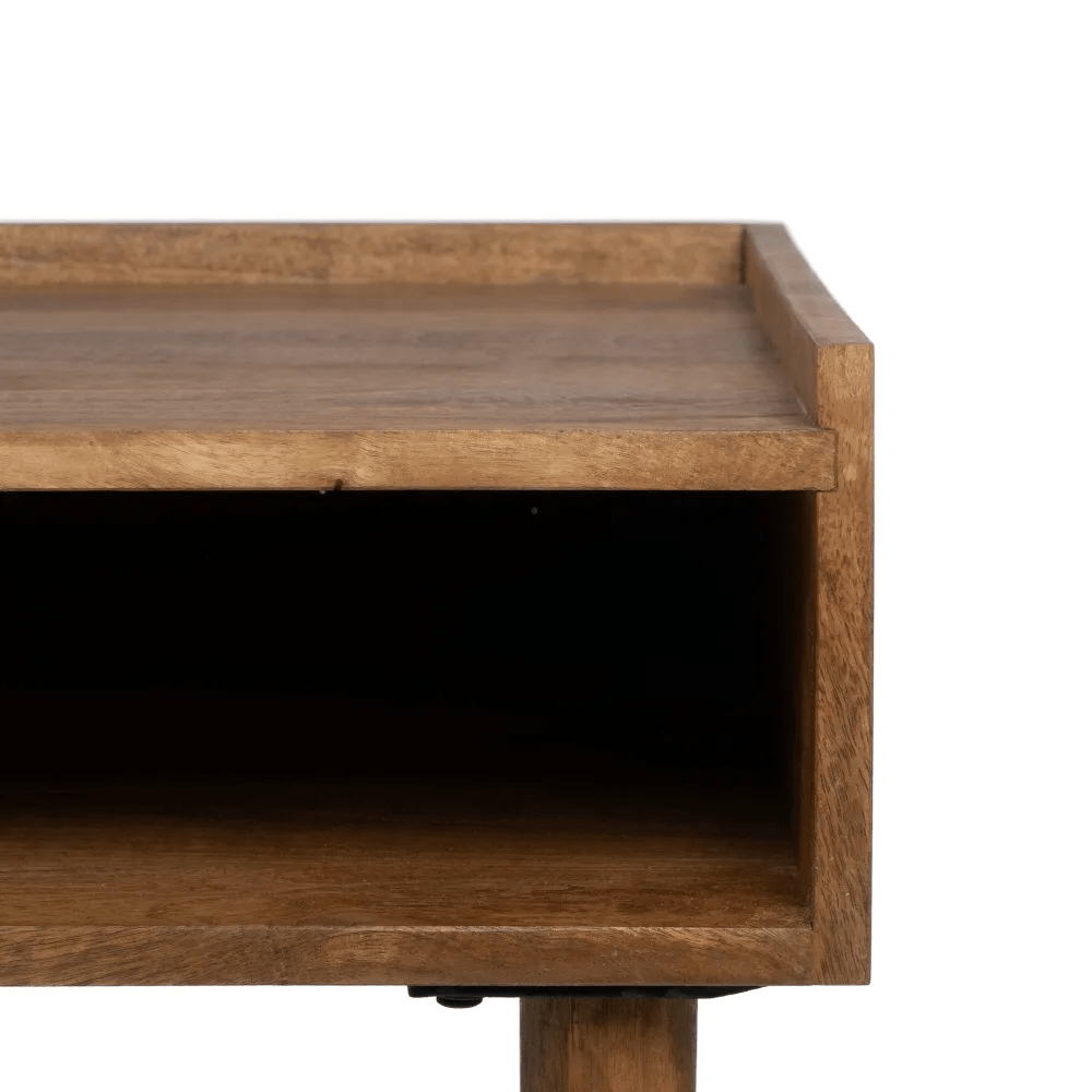 Mesita de noche en color natural fabricada en madera de mango, combinado con MDF.