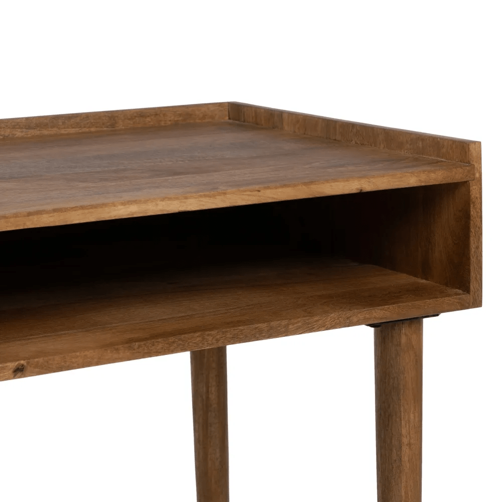 Escritorio en color natural fabricado en madera de mango, combinado con MDF.