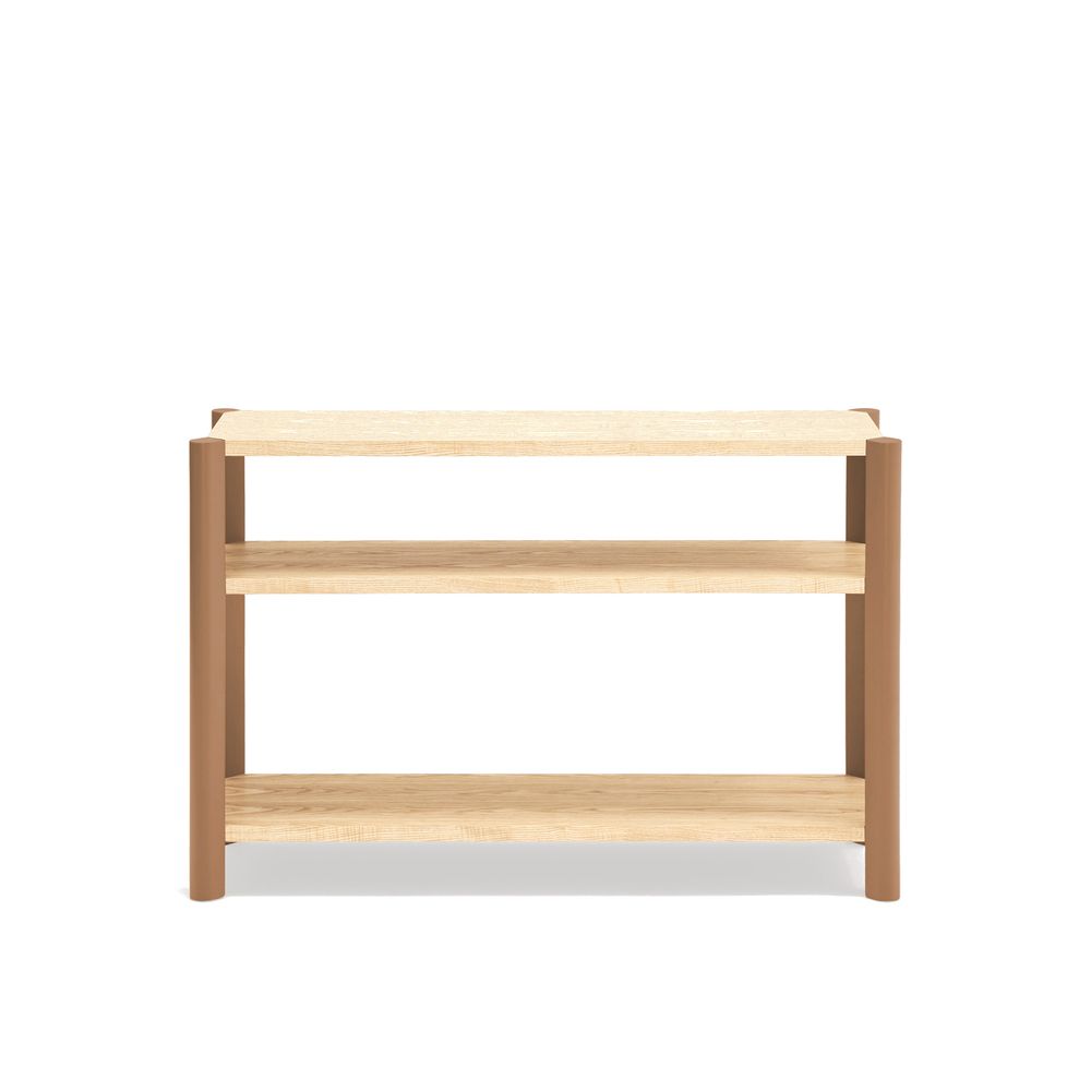 Estantería en color roble y arcilla fabricada en chapa de roble, combinado con madera lacada.