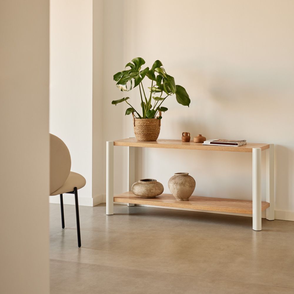 Bona es una estantería de líneas sencillas y diseño reconocible, pensada para ofrecer funcionalidad y estilo en cualquier entorno.