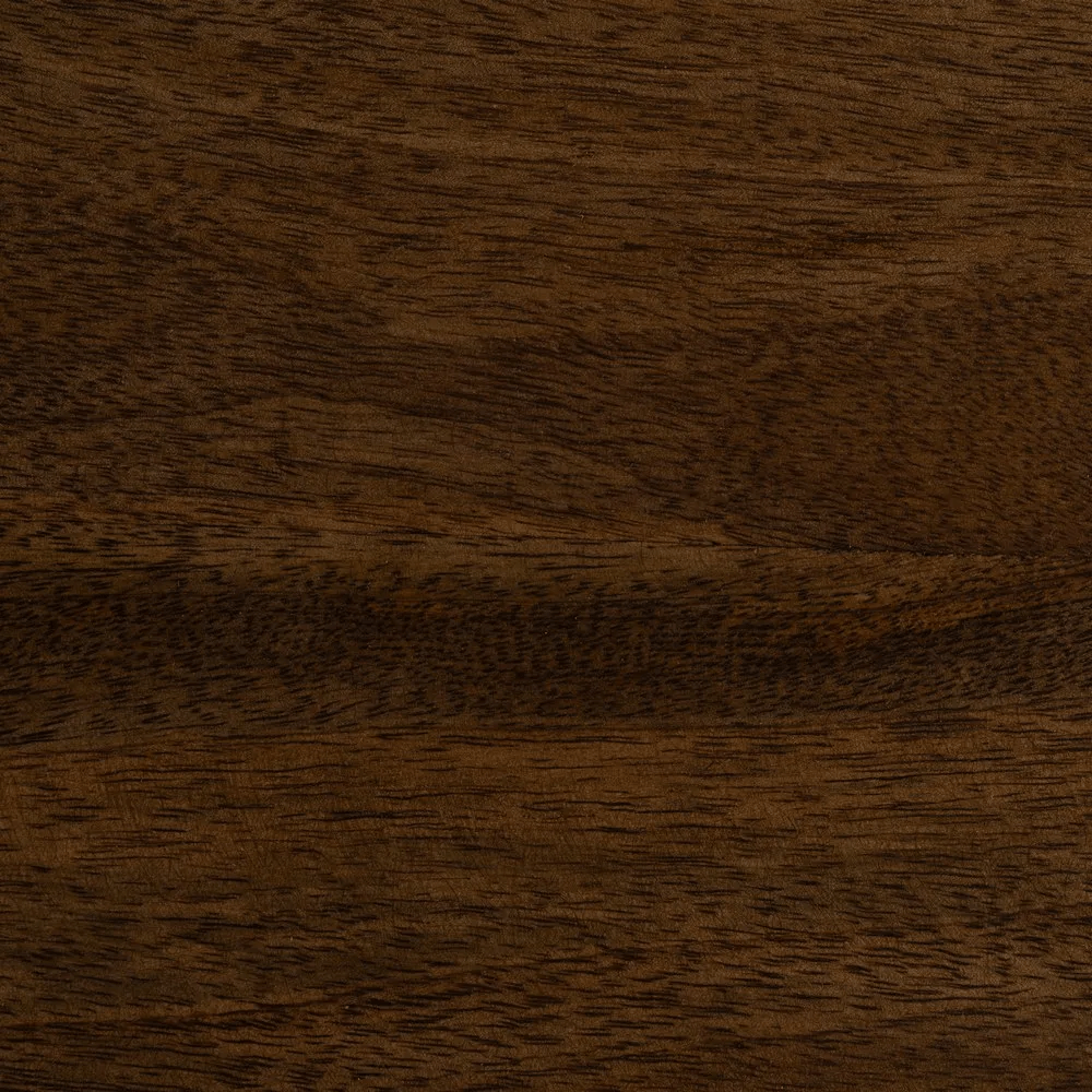 Funcionalidad y estilo natural se combinan en esta estantería fabricada en madera de mango, un material resistente y de gran belleza por sus vetas únicas. Su acabado en color marrón realza la calidez de cualquier espacio, aportando un toque elegante y atemporal.