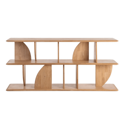 Estantería en color natural fabricada en madera de caucho.