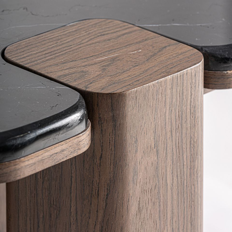 La mesa auxiliar Atlas destaca por la elegante combinación de mármol oscuro y madera, creando un equilibrio perfecto entre solidez y refinamiento. Su diseño escultural y materiales nobles la convierten en una pieza protagonista, ideal para proyectos contract que buscan distinción, carácter y una presencia sofisticada en cada detalle.