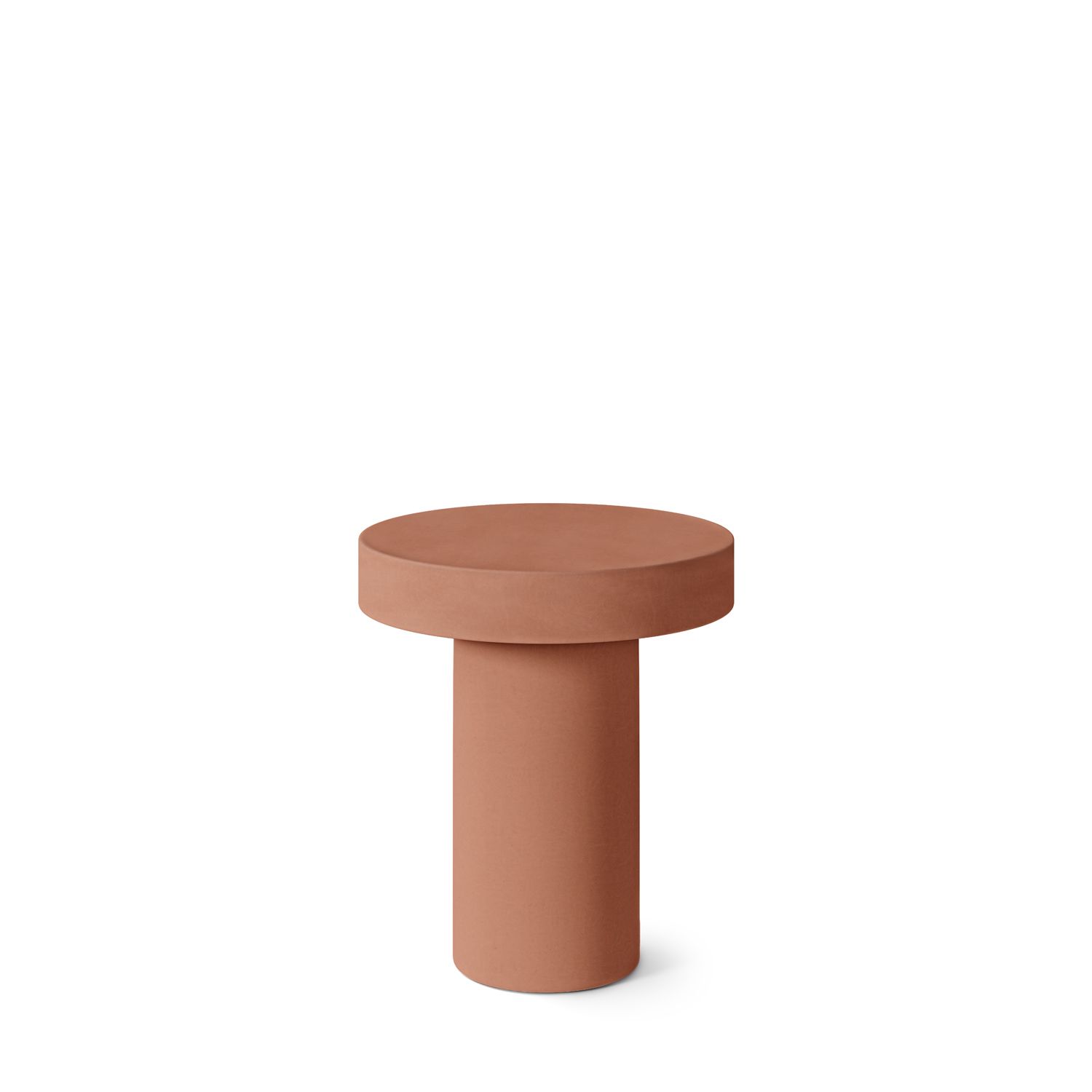 Mesa auxiliar en color terracota fabricada en cemento – GFRC (reforzado con fibra de vidrio).