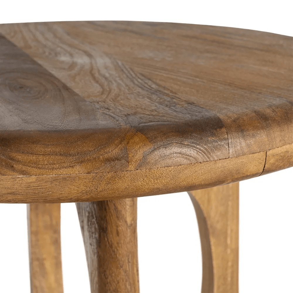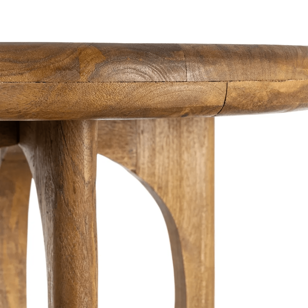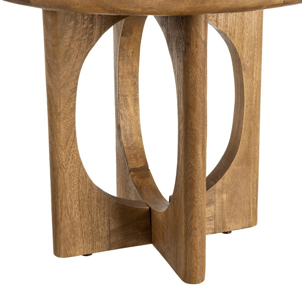 Esta mesa de centro está fabricada en madera de mango y presenta un cálido acabado en color miel que realza las vetas naturales del material, aportando un aspecto auténtico y elegante. Su diseño de líneas suaves y base escultórica crea un equilibrio perfecto entre estilo contemporáneo y esencia artesanal, convirtiéndola en una pieza protagonista para la sala.