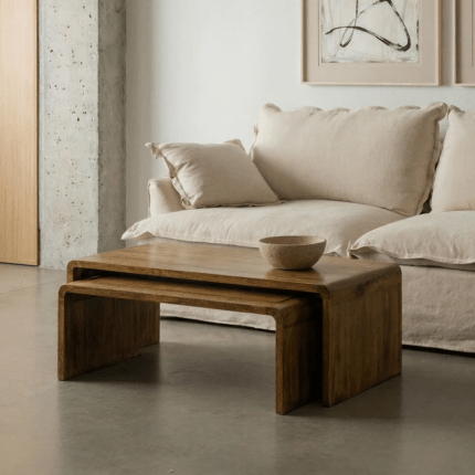 Set de mesas de centro en color miel fabricadas en madera de mango.