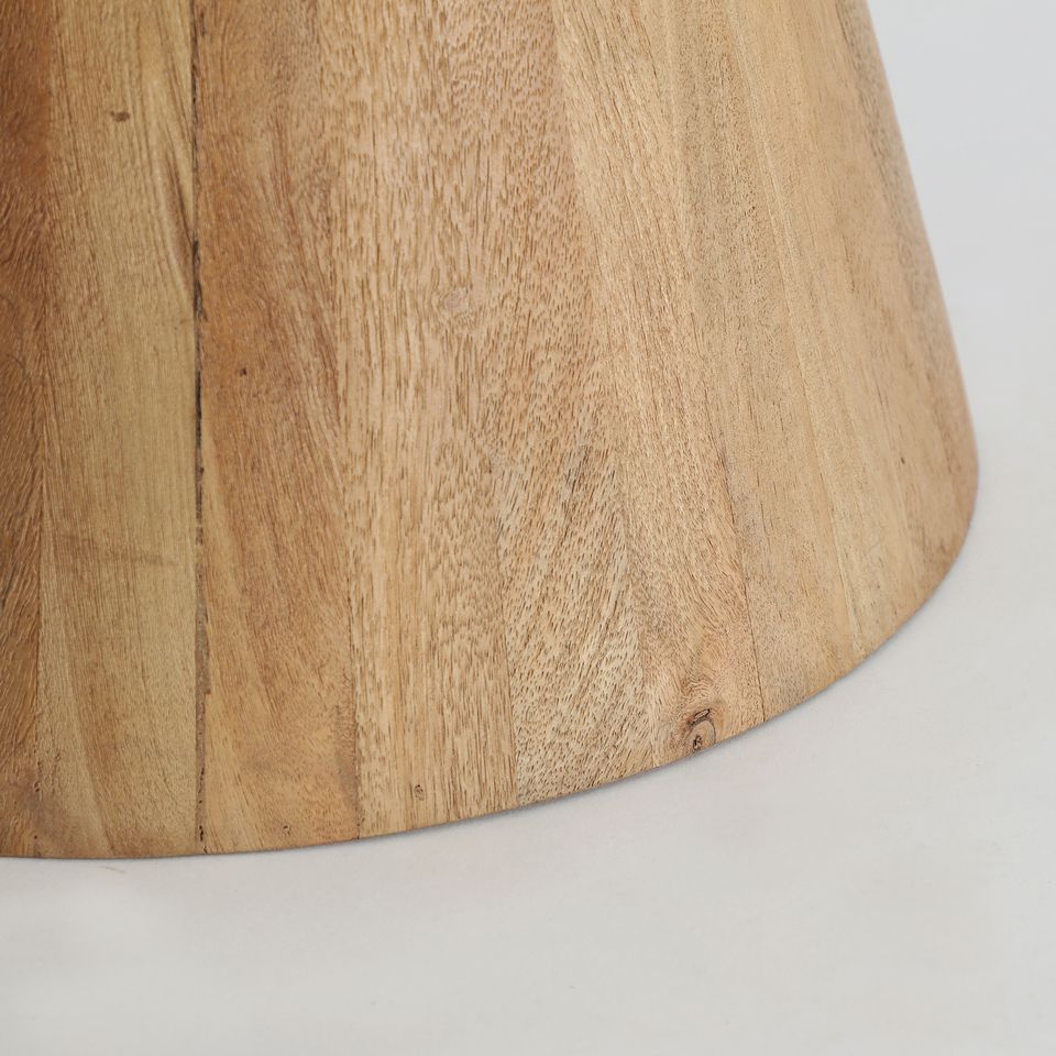 La mesa de centro Lautrec de KODU aporta una reinterpretación contemporánea del estilo nórdico, combinando líneas simples con materiales llenos de carácter. Su tablero de terrazo blanco, rico en matices y textura, se equilibra de forma natural con la base cónica de madera de mango, que introduce calidez y un toque artesanal al espacio.