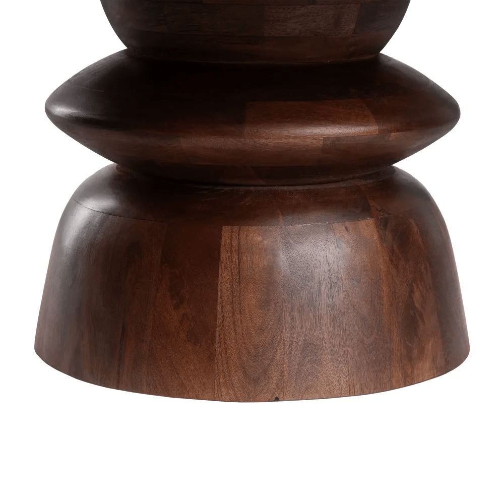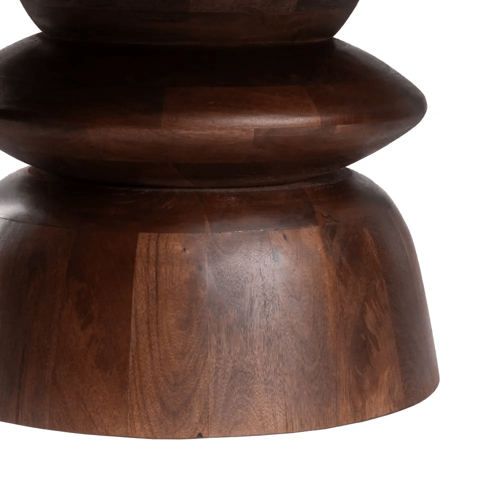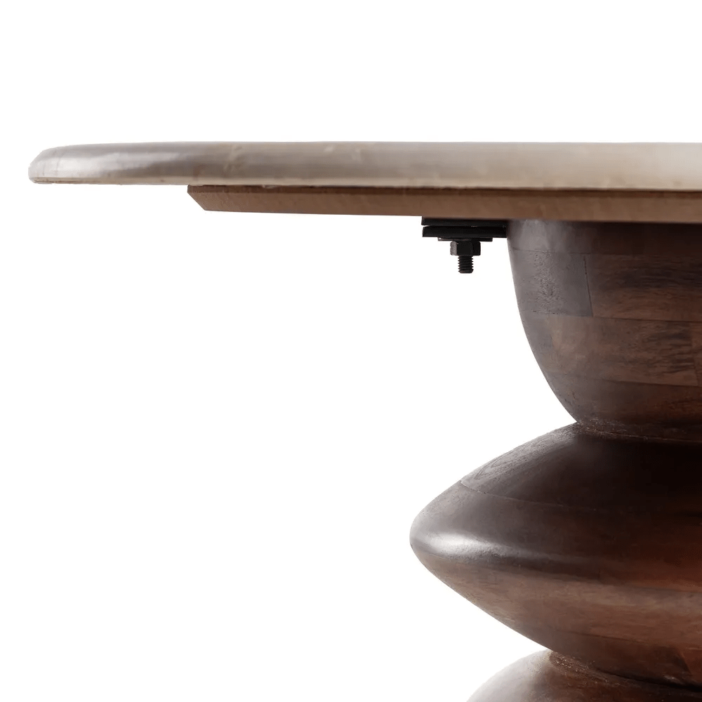 Una pieza que combina diseño escultórico y materiales nobles. Fabricada en mármol natural y madera de mango, esta mesa de centro presenta una cubierta redonda en acabado suave y elegante, sostenida por una base con formas orgánicas que aportan carácter y sofisticación al espacio. Su diseño redondo, contemporáneo y elegante la convierte en el complemento perfecto para tu sala.