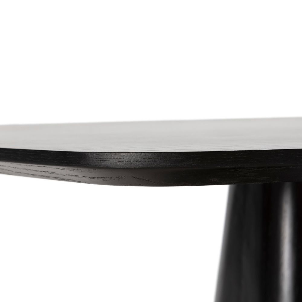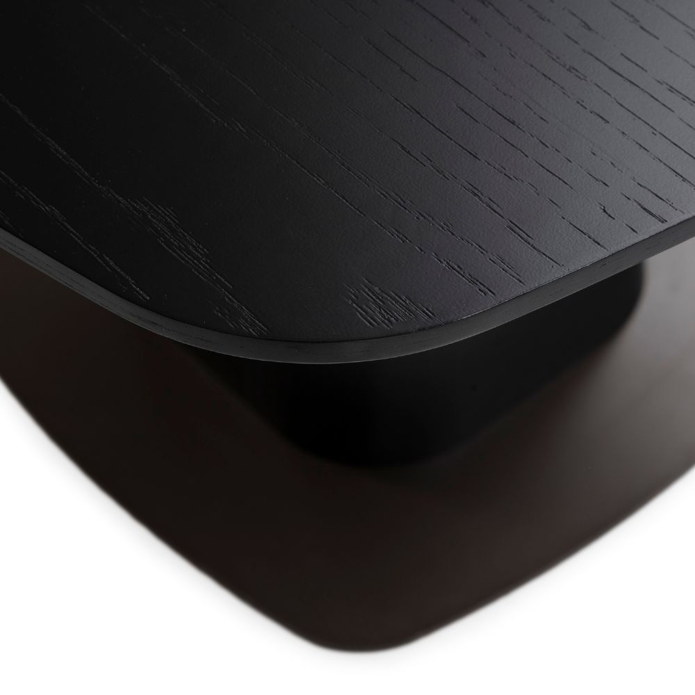 La mesa de comedor Etel combina elegancia y modernidad en un diseño de líneas suaves y contemporáneas. Fabricada en chapado MDF combinado con madera de roble, destaca por su estructura sólida y su acabado en color negro, ideal para crear ambientes sofisticados y con personalidad.