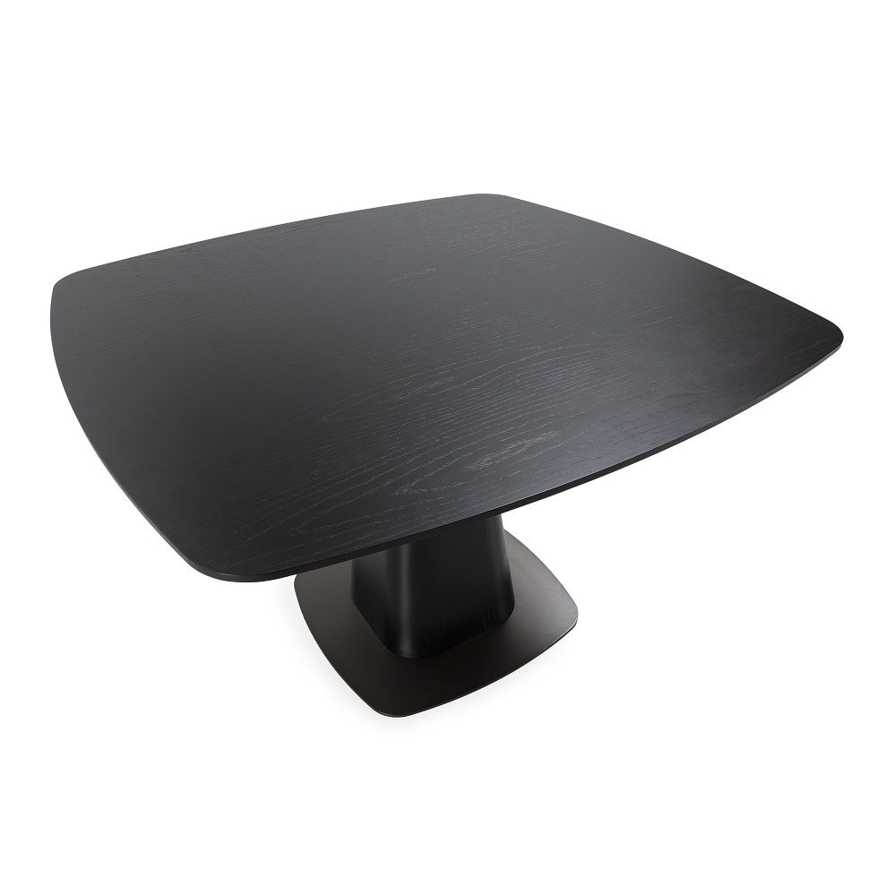 Mesa de comedor cuadrada en color negro fabricada en chapado mdf, combinado con madera de roble.