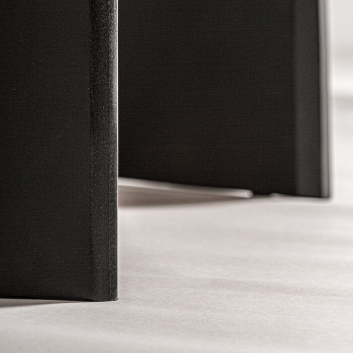 Mesa de centro en color negro fabricada en chapa de roble, combinado con metal.