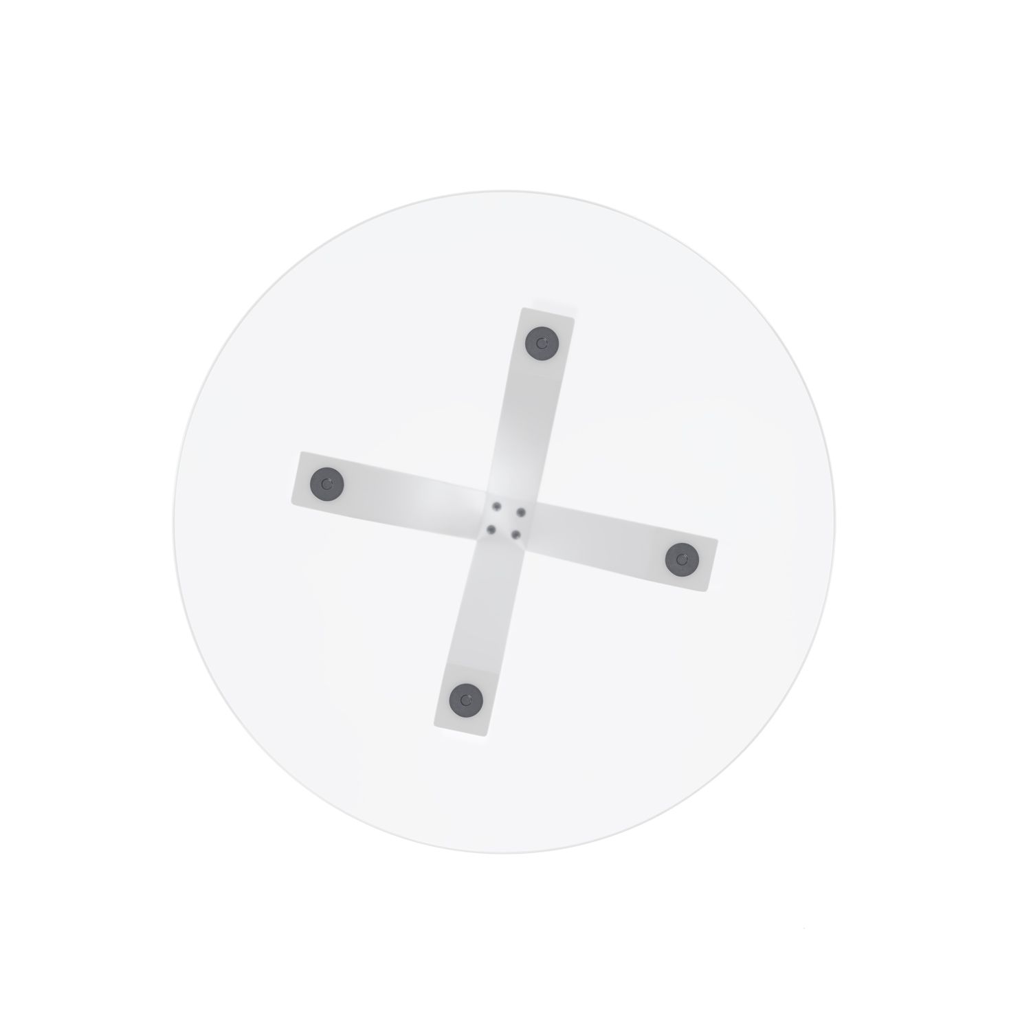 Las patas metálicas, disponibles en acabados blanco o negro, aportan estabilidad y un contraste visual limpio y elegante, y su forma en X contribuye a una presencia equilibrada y contemporánea.