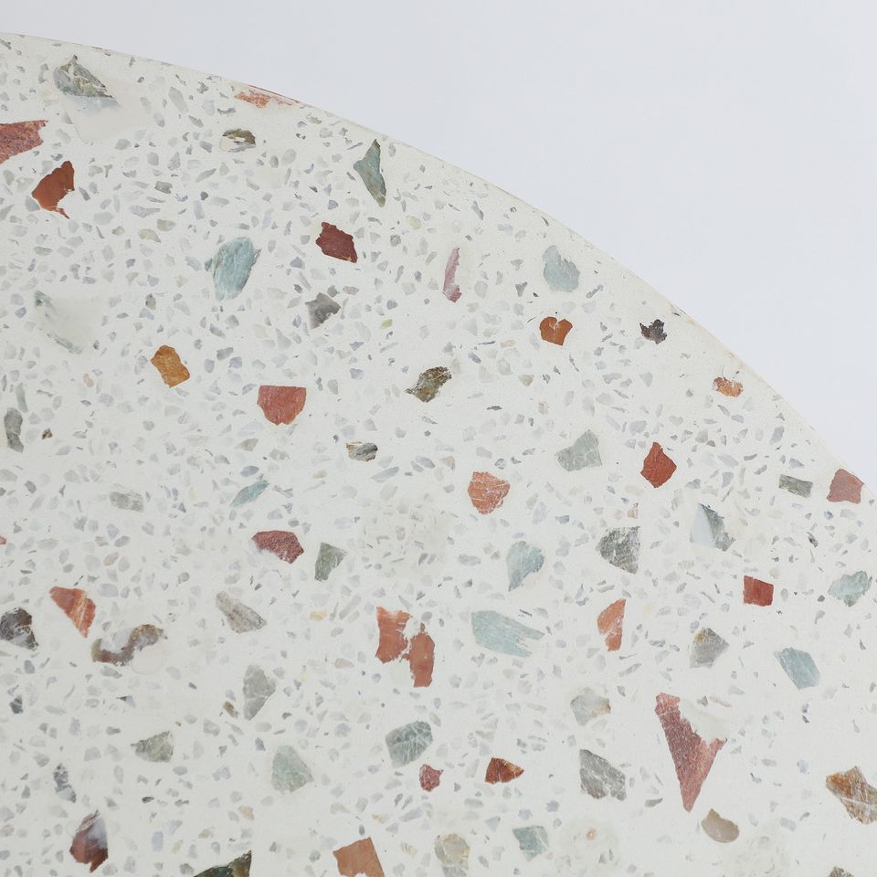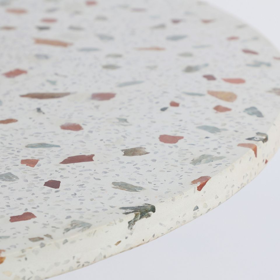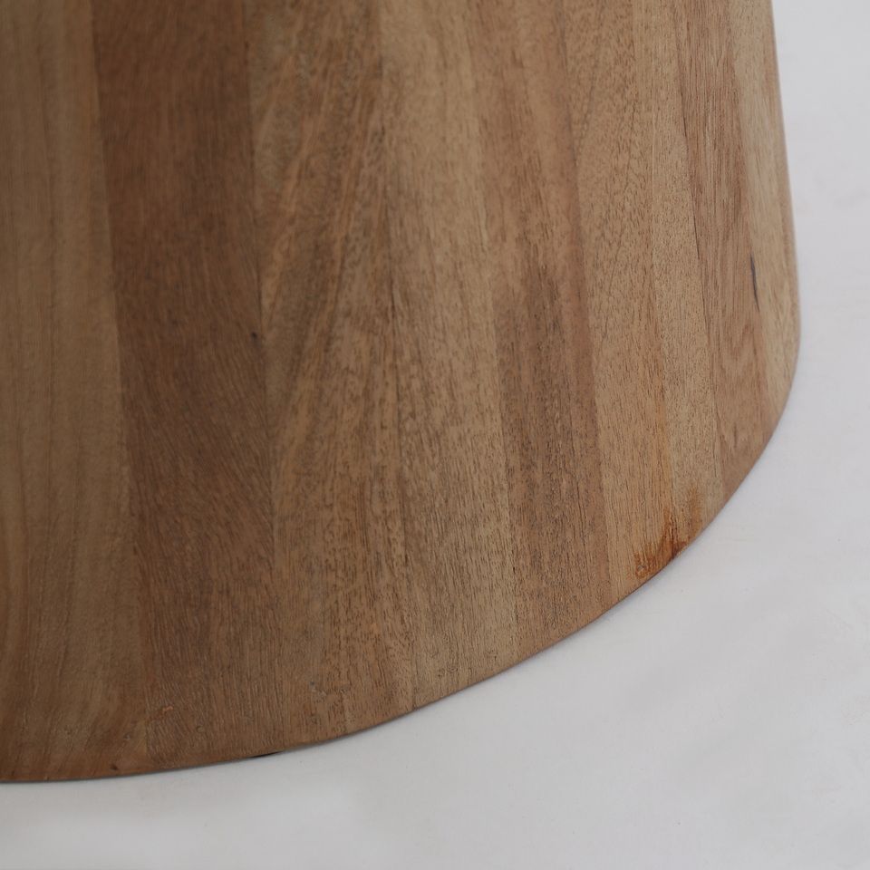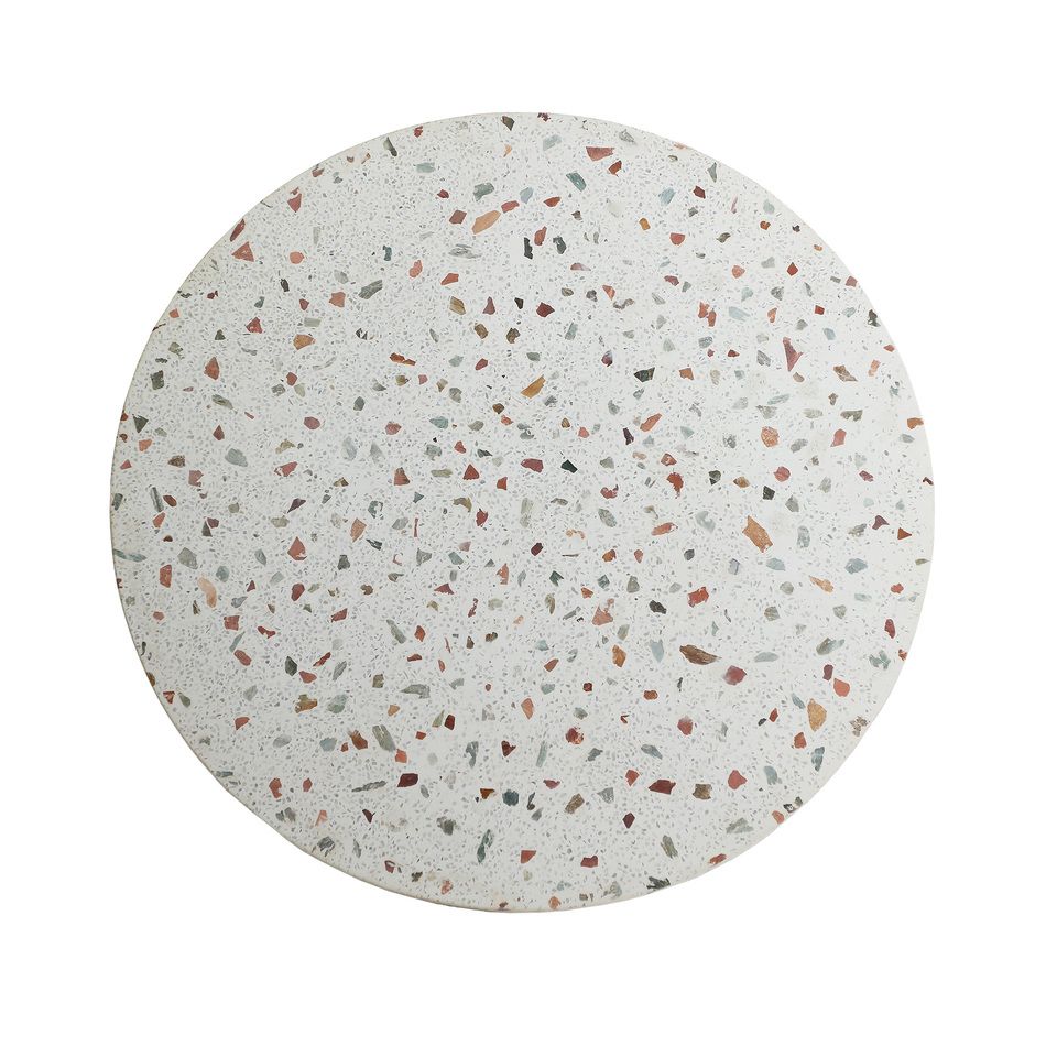 La mesa de comedor Lautrec de KODU fusiona materiales genuinos y estética contemporánea. Su sobre de terrazo blanco, lleno de matices, se apoya sobre una base cónica de madera de mango en un cálido tono marrón. El resultado es una pieza escultórica, equilibrada y robusta, que aporta carácter sin perder ligereza visual.