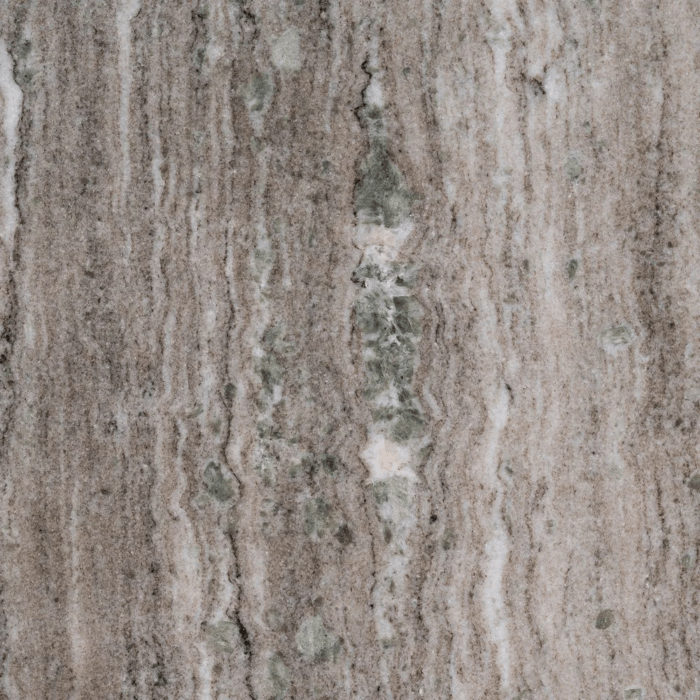 Mesa de centro en color gris y marrón fabricada en mármol, combinado con madera de mango.