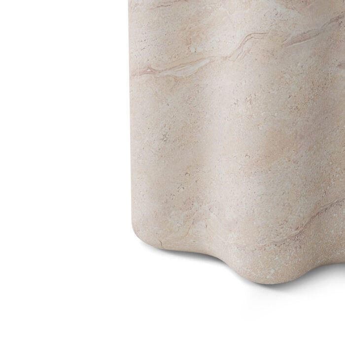 La mesa MICHELLE reinterpreta la elegancia natural a través de un diseño contemporáneo y orgánico. Fabricada íntegramente en cemento con un refinado acabado mármol travertino, esta pieza destaca por su estética fluida y su silueta armoniosa, que combina una tapa redonda con una base esculpida de líneas onduladas.
