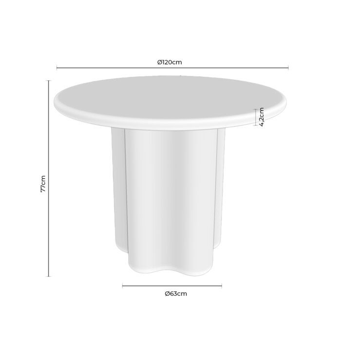Disponible en dos tamaños (100 cm y 120 cm de diámetro), se adapta con naturalidad tanto a comedores compactos como a terrazas espaciosas, ofreciendo funcionalidad sin renunciar al estilo. Su textura suave y tonalidad cálida aportan una sensación de serenidad, convirtiéndola en una opción ideal para ambientes mediterráneos, minimalistas o de inspiración natural.