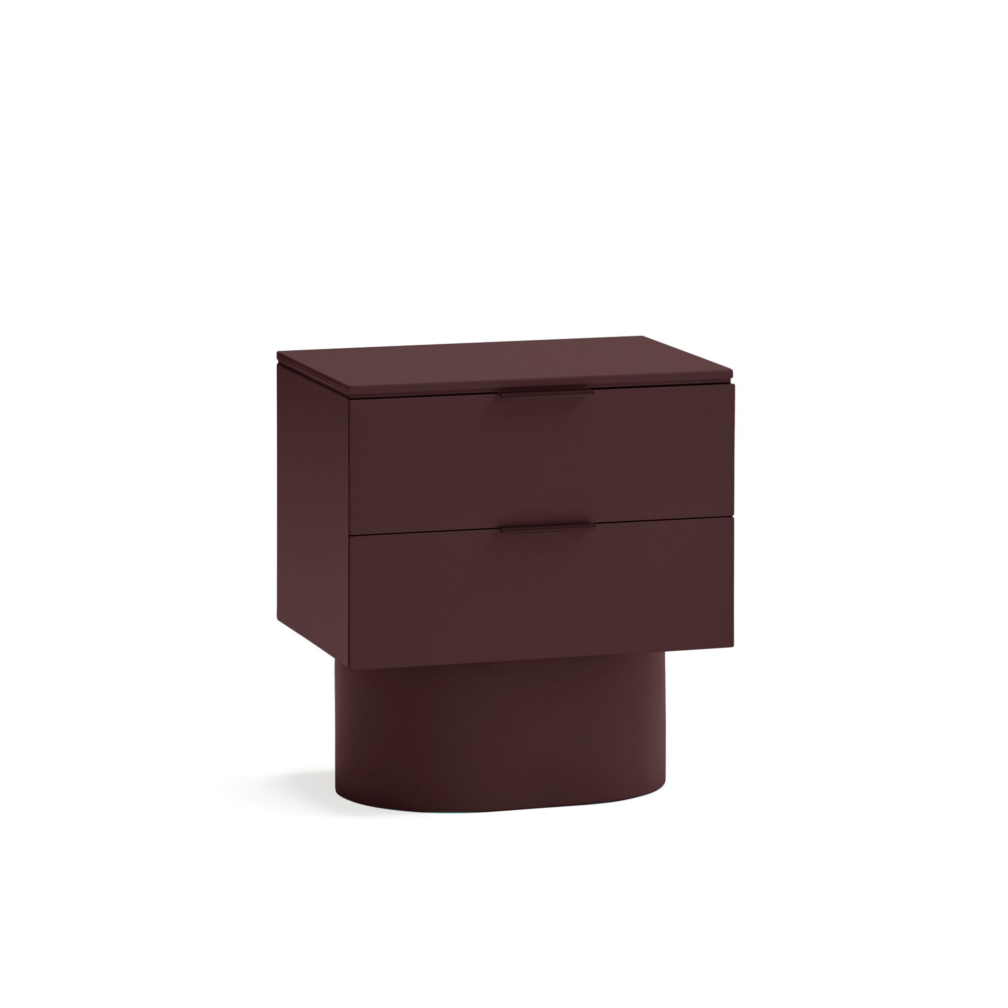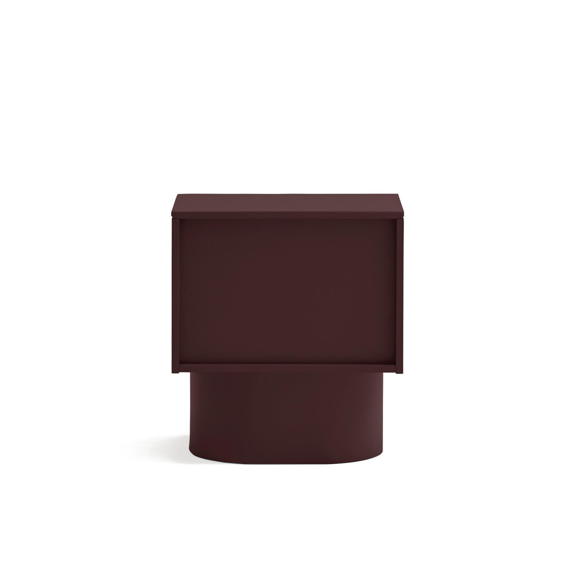 Mesita de noche en color berenjena fabricada en MDF lacado.