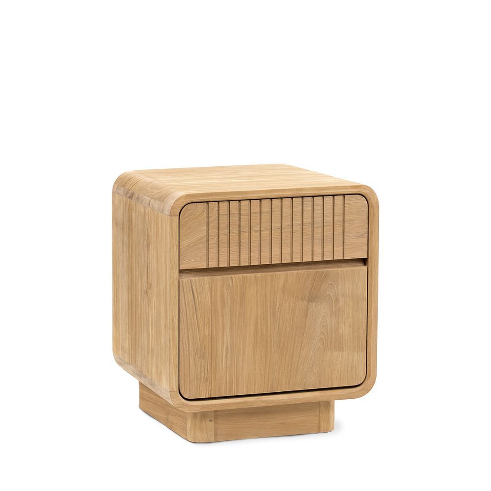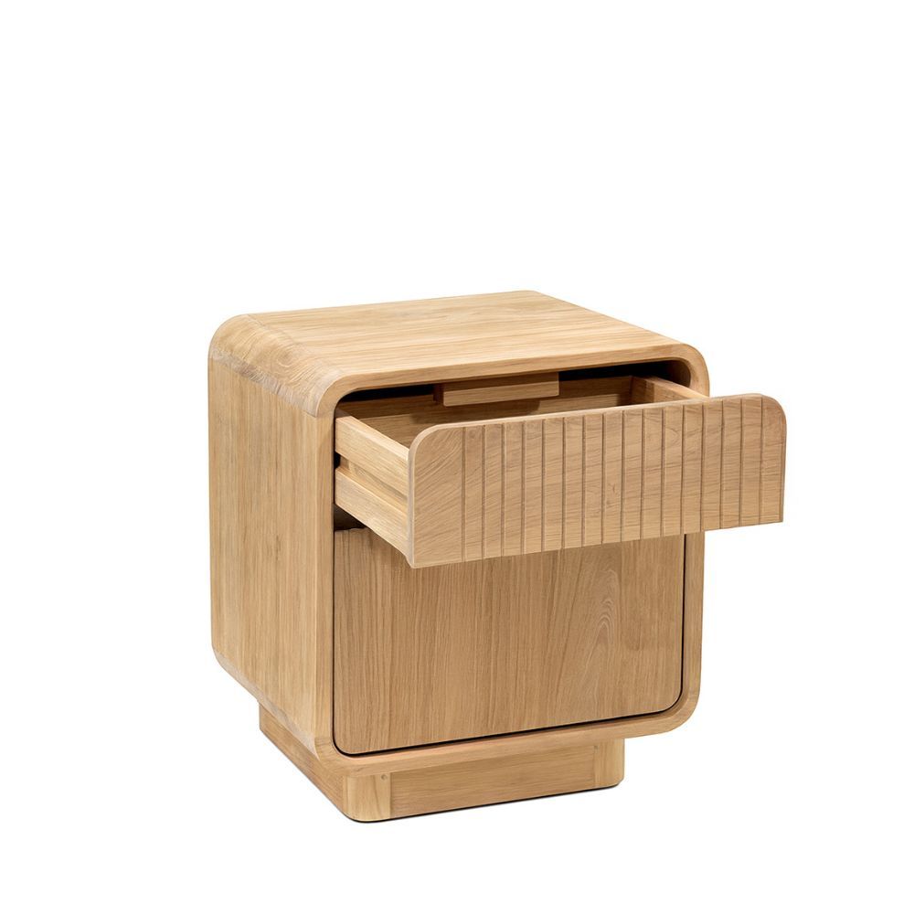 Mesita de noche en color natural fabricada en madera de teca.