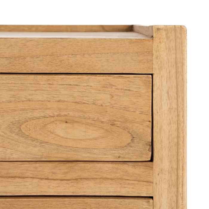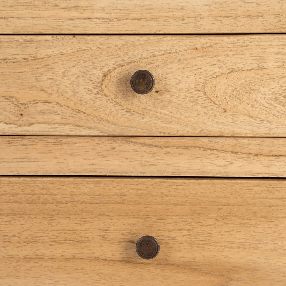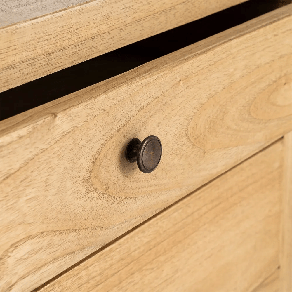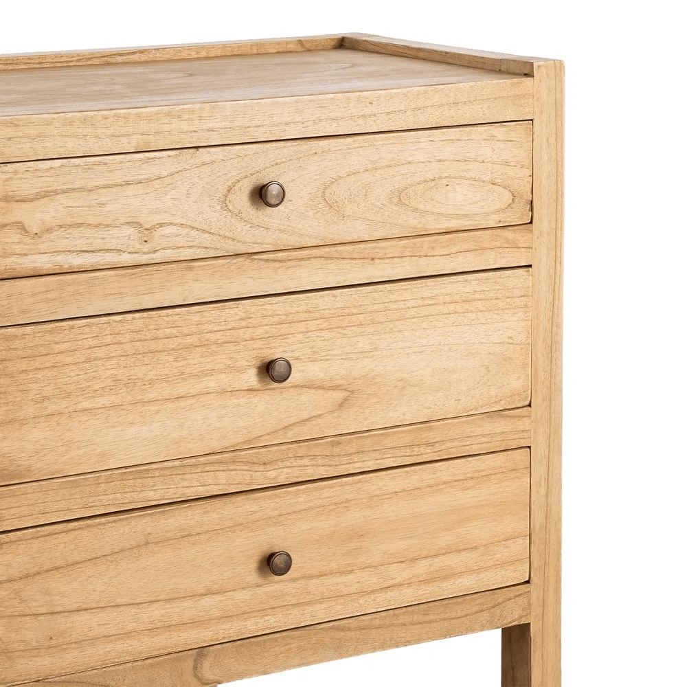 Cómoda realizada a mano con madera de mindi y accesorios de bronce.