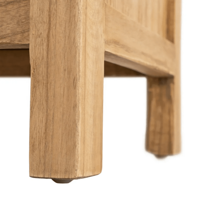Aporta calidez y estilo a tu dormitorio con esta elegante mesita de noche fabricada en madera de mindi, un material resistente y de gran belleza que resalta por su acabado natural. Su diseño sencillo y líneas rectas aportan un aire acogedor y atemporal, ideal para combinar con estilos nórdicos, rústicos o contemporáneos.
