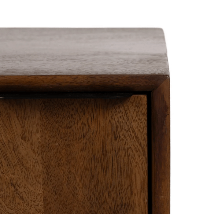 La mesita Talaia combina diseño moderno y artesanía natural en una pieza elegante y funcional. Fabricada en madera maciza de mango y estructura de hierro, destaca por su solidez y la belleza de sus acabados. El color marrón natural resalta las vetas únicas de la madera, aportando calidez y estilo a cualquier espacio.