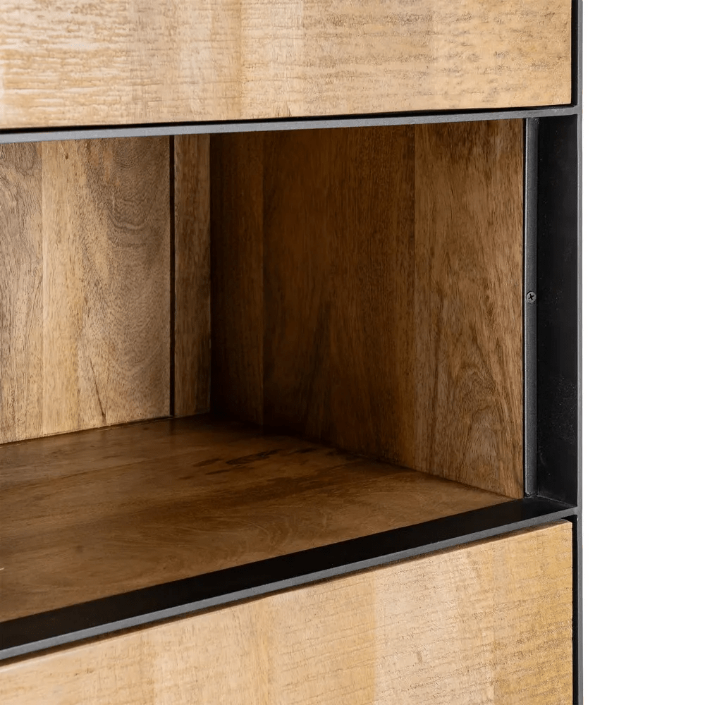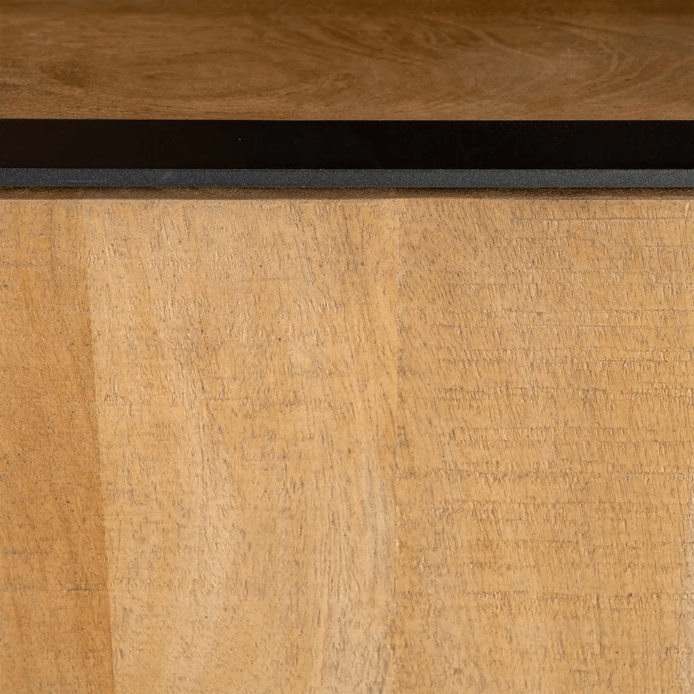 Cada mueble es único gracias a las vetas propias de la madera de mango, lo que refuerza su personalidad y su estilo auténtico. El mueble auxiliar Ohio es una pieza versátil que encaja a la perfección en salones, comedores o zonas de paso, aportando calidez, funcionalidad y un diseño con carácter.
